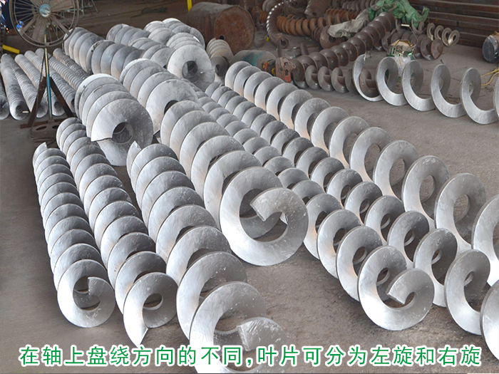 螺旋叶片在轴上盘绕方向的不同,叶片可分为左旋和右旋。