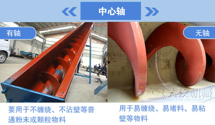 无轴叶片的设计制作难度要高于普通有轴叶片,有轴叶片只要用于不缠绕、不沾壁等普通粉末或颗粒物料(如:煤灰、钢丸)输送,无轴叶片主要用于易缠绕、易堵料、易粘壁等物料(如:餐厨垃圾、污泥)输送,虽然它们的外观差异就只有一根螺旋轴的区别,但是在生产制造上无轴叶片的制作要比有轴叶片的制作难度高出不少,所以在价格上会有几百甚至上千元的差异。