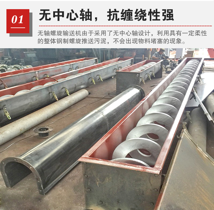污泥中含有大量的杂质,使用传统输送机对其进行输送很容易出现堵料现象,严重影响输送效率,无轴午夜看片网站由于采用了无中心轴设计,利用具有一定柔性的整体钢制螺旋推送污泥,其抗缠绕性强,不会出现物料堵塞的现象。