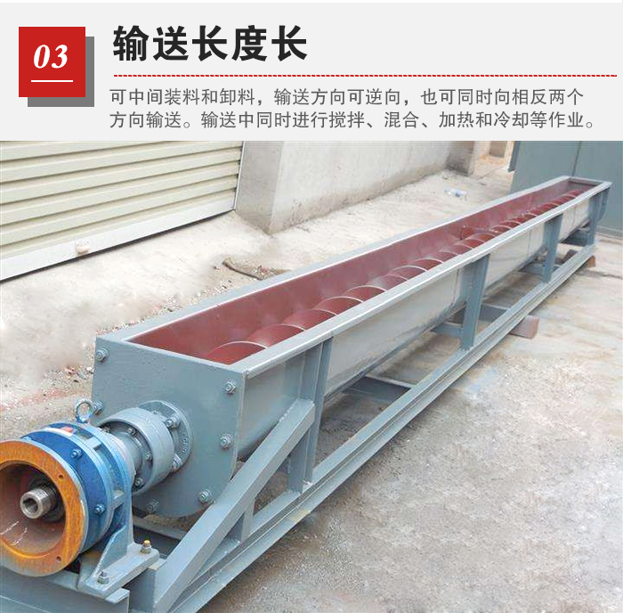 无轴午夜看片网站可以中间装料和卸料,输送方向可逆向,也可同时向相反两个方向输送。输送过程中还可对物料进行搅拌、混合、加热和冷却等作业,还可以通过装卸闸门调节污泥的流量,单机输送长度可以达到60~70m。