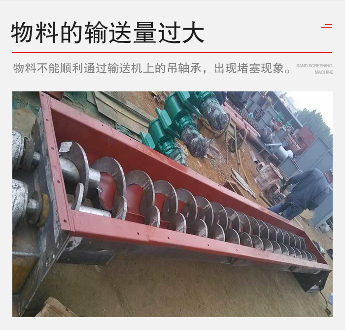 原因一:物料的输送量过大,从而,垂直提升输送机,使得物料不能顺利通过输送机上的吊轴承,进而,出现堵塞现象,或者是电机负载过大。
