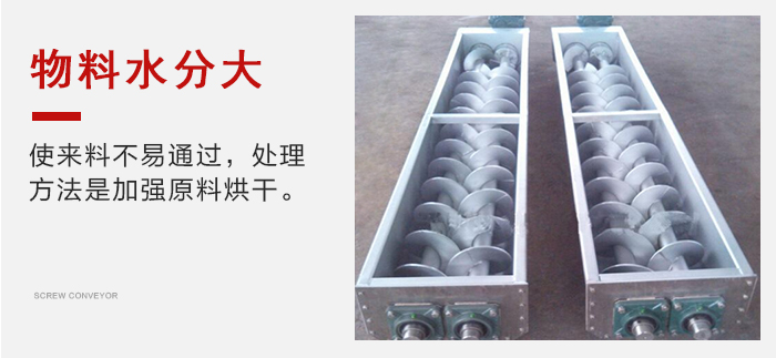 1、物料水分大,集结在螺旋吊轴承上并逐渐加厚,使来料不易通过,处理方法是加强原料烘干。