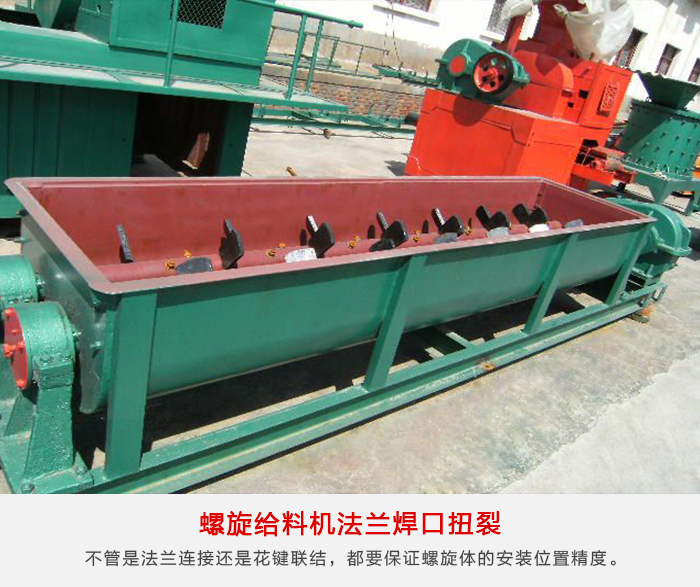 1、由于异常扭矩的产生,联结法兰焊接失效,处理方法是保证设备安装精度,不管是法兰连接还是花键联结,都要保证螺旋体的安装位置精度,安装后应接线调试确定螺旋转向,声音有无异常。试运转后检查电机、减速机、轴承温升,一切正常后,开动手动螺旋料仓闸门逐渐加料,经过调试后,使螺旋运转平稳。