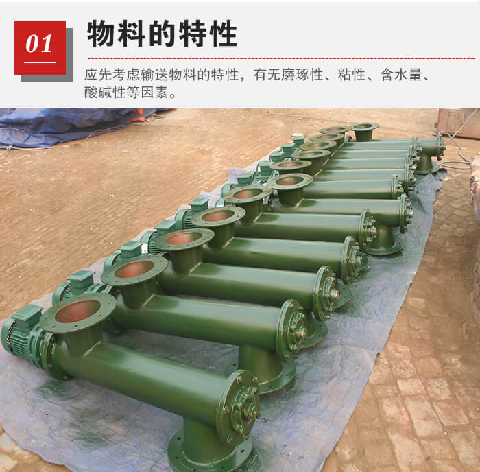 螺旋给料机的选型首先应综合考虑输送物料的特性,有无磨琢性、粘性、含水量、酸碱性等等因素,做到针对不同的物料而设计合适的机型。