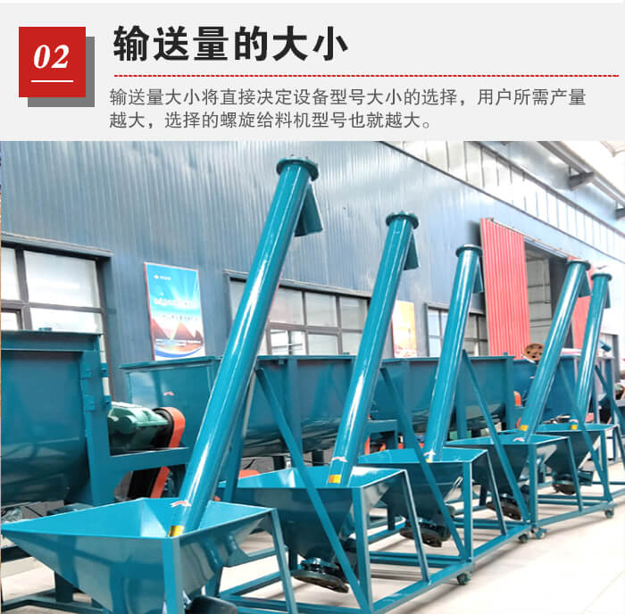 输送量大小将直接决定设备型号大小的选择,用户所需产量越大,选择的螺旋给料机型号也就越大,用户需要结合自身对产量的需求来选择合适的型号。