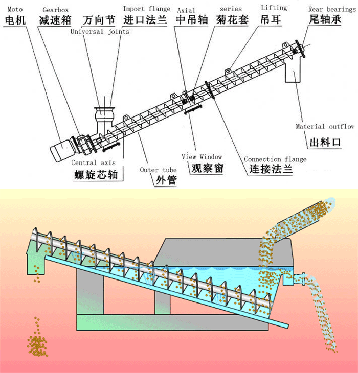 倾斜午夜看片网站是利用电动机经减速器带动螺旋回转,通过旋转,把物料沿固定的机壳内推移而进行输送工作,从而输送到预定的位置。 大角度午夜看片网站根据各种用途、安装位置,型号、输送方式,对减速器、电动机的安装位置可多样化、不受限制。