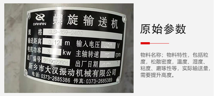 物料名称;物料特性,包括粒度,松散密度,温度、湿度、粘度、磨琢性等;实际输送量;需要提升高度。