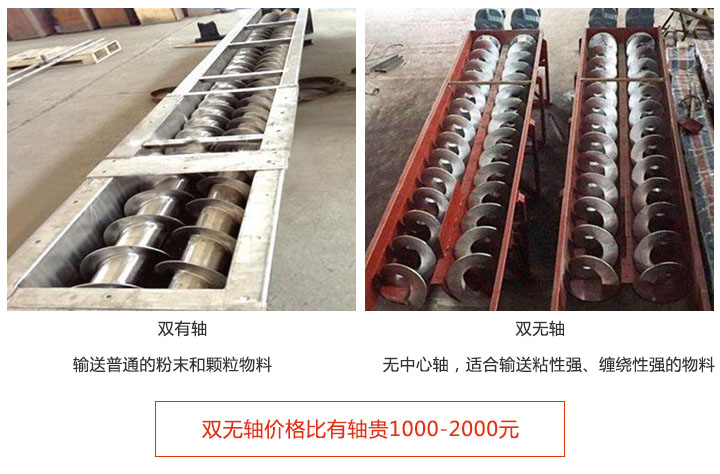 注:双无轴午夜看片网站价格比有轴贵1000-2000元,因为采用无轴设计,可解决易缠绕物料的输送,且设计难度比有轴大。