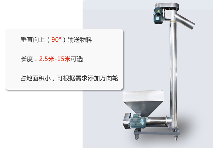 垂直午夜看片网站用于解决需要垂直向上(90°)输送物料的难题,其长度2.5米-15米,大家可根据需要选择长度;相比普通午夜看片网站,该款设计更好的节约了占地面积,也可根据场地需要添加移动轮,方便来回移动。
