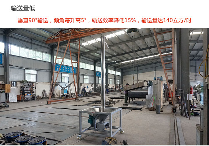 垂直午夜看片网站采用垂直输送的方式,其倾角为90°,在输送中,输送机的倾角每升高5°,输送效率就会降低15%,因而造成输送量较低,只能达140立方/时。