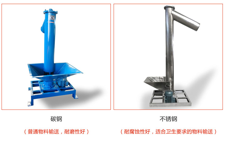 垂直午夜看片网站材质有碳钢和不锈钢两类,碳钢适合普通物料输送,耐磨性好;不锈钢适合医药,食品,化工行业的大豆,药品,化工粉末等物料的输送,耐腐蚀性好,不易生锈,干净卫生;不锈钢价格比碳钢高出500-3000元左右。