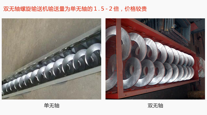 无轴午夜看片网站型号有WLS150-WLS500等6中规格,型号越大产量越高,价格越贵;此外还分单无轴和双无轴两种:双无轴午夜看片网站输送量为单无轴的1.5-2倍,可输送物料同时具备冷却、搅拌的功能,其价格比单轴贵。