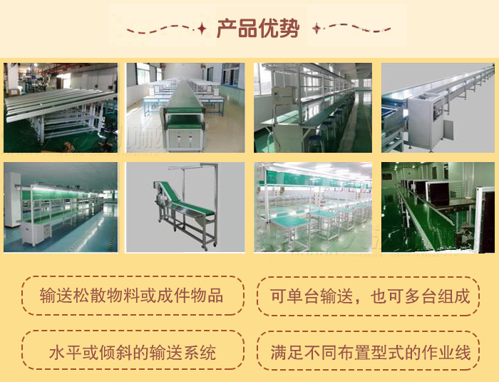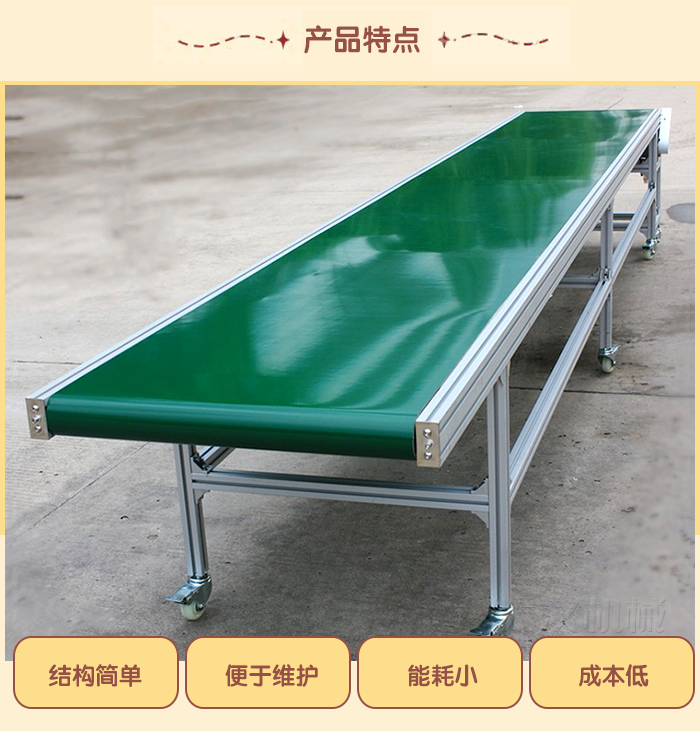 用来输送松散物料或成件物品,根据输送工艺要求,可以单台输送,也可多台组成或与其他输送设备组成水平或倾斜的输送系统,以满足不同布置型式的作业线需要。