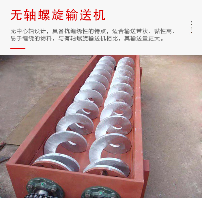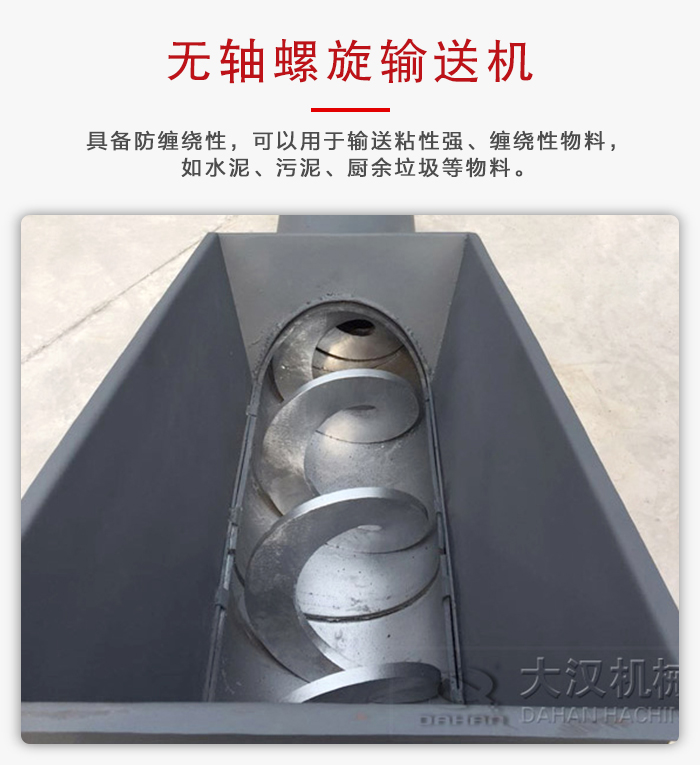 无轴午夜看片网站采用了无中心轴设计,具备防缠绕性,可以用于输送粘性强、缠绕性物料,如水泥、污泥、厨余垃圾等物料,可水平、倾斜输送(倾斜角度不超过20°),韩日午夜在线资源一区二区无轴午夜看片网站可分为单无轴和双无轴午夜看片网站,还可根据输送物料及应用场合分为碳钢、不锈钢材质。
