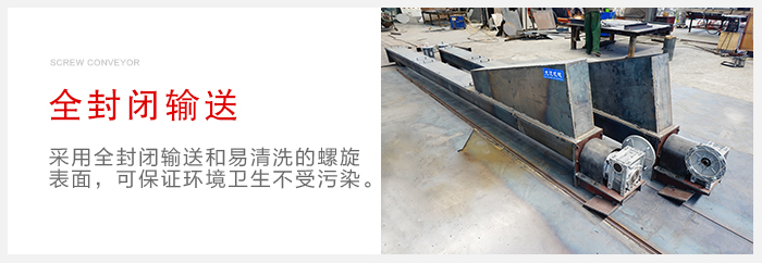 4、采用全封闭输送和易清洗的螺旋表面,可保证环境卫生和所送物料不受污染、不泄漏。