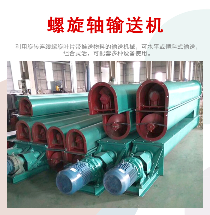 螺旋轴输送机主要由驱动装置,机壳、盖板、螺旋轴、螺旋叶片、进料口、出料口等部件组成。