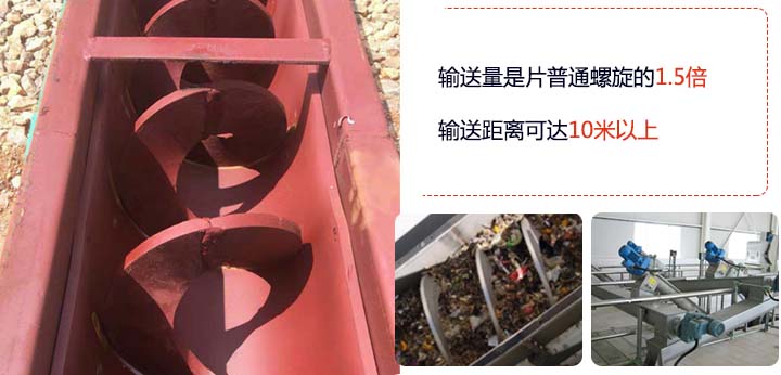 3、输送量是同直径螺旋的1.5倍,输送距离可达10米以上,根据客户要求,采用多级串联安装。