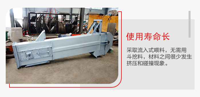 4.使用寿命长,提升机的喂料采取流入式,无需用斗挖料,材料之间很少发生挤压和碰撞现象。本机在设计时保证物料在喂料、卸料时少有撒落,减少了机械磨损。