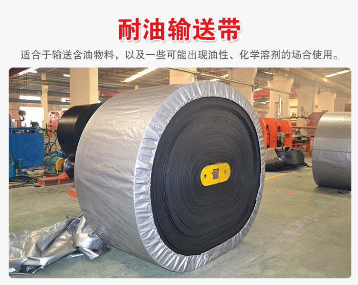 耐油输送带全棉帆布、尼龙帆布、聚酯帆布,经过压延、成型、硫化等工序精制而成,具有比较好的耐油性,适合于输送含油物料,以及一些可能出现油性、化学溶剂的场合使用。