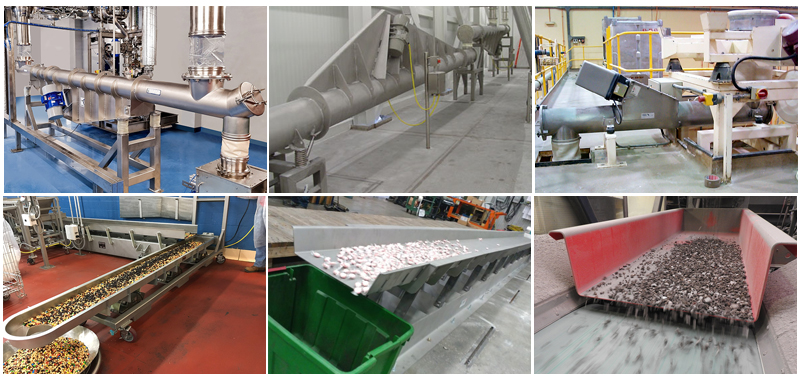 载体:可选择U型槽和管状的,也可以制成敞开式或密封式,以满足不同的工艺流程。料槽的进料和出料也可根据需要制成单点/多点进料,单点/多点出料等多种型式。